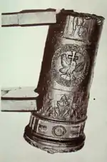 With the help of Venetian craftsmen, Voivode Petru Cercel established the first bronze cannon and munitions foundry of Wallachia in 1583. It was located at the Princely Court of Târgoviște.[4][5] The cannons built there featured the coat of arms of Wallachia, around which the following Slavonic inscription was written: "Io Petru Voivode, son of Pătrașcu - Voivode, grandson of Radu - Voivode, made [this cannon]".[6]