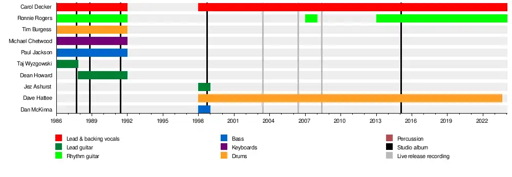 - Carol Decker – vocals, songwriter (1986–1991, 1998–present)
