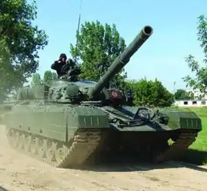 The vehicle has a modified suspension with seven pairs of wheels, unlike the T-72 and most tanks based on it which have six.[3][4] This allowed the hull to be stretched by 1 m and installation of a more powerful 850-900 HP diesel engine 8VSA3, basically a variant of the engine mounted in TR-85. It used an old DShK machine gun for anti-aircraft purposes and was fitted with extra armour. The 125mm A555 smoothbore tank gun was developed by Arsenal Reșița factory. As a result of these changes the tank's weight increased from 41.5 tonnes (T-72M) to around 50 tonnes.