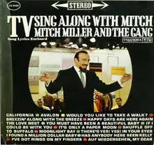 TV Sing Along with Mitch is an album by Mitch Miller and The Gang. It was released in 1961 on the Columbia label (catalog nos. CL-1628 and CS-8428).[1][2] The album debuted on Billboard magazine's popular albums chart on June 12, 1961, peaked at No. 3, and remained on that chart for 40 weeks.[3]