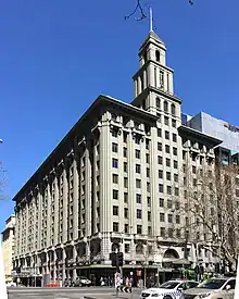 - Sydney, cnr Elizabeth and Park Streets, north half with tower completed 1930, southern in 1932, A&K Henderson. (demolished c1976)[16]