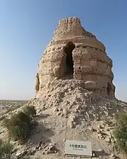 The Ta'er Temple (Chinese: 塔尔寺; lit. 'Pagoda Temple') is the modern name of a ruined Buddhist temple outside of the walls of Suoyang City in Guazhou County, Gansu, China. It has been tentatively identified with the King Ashoka Temple (Chinese: 阿育王寺; pinyin: Āyùwāng Sì) recorded in historical documents, which was first built in the Northern Zhou dynasty (557–581) at the latest. The extant ruins, including the main adobe pagoda and eleven smaller ones, mostly date to the Western Xia dynasty (1038–1227).