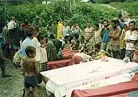 Mourners at Selbang grieve over coffins of the dead in the December 1994 crash.