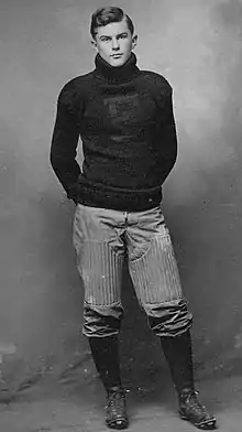 Jones quarterbacked Yale to 6–0 and 12–0 victories versus Harvard as a junior and senior, respectively, in 1906 and 1907. Yale finished with 9–0–1 records both years, and he was named an All-American both seasons. As head coach, Jones led Yale football to a 5–3–1 record versus Harvard, and gave the most revered pregame pep talk in Yale athletic history before the Harvard–Yale game in 1923. Before that contest Jones intoned famously, "Gentlemen, you are about to play football against Harvard. Never again may you do something so important."[2] Yale won 13-0, with Babe Ruth providing broadcast commentary. Ducky Pond returned a Harvard fumble sixty-three yards for a touchdown. Bill Mallory kicked the extra point and two field goals.[3] The Yale team was 8-0 for the season.[4]