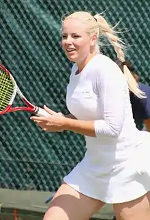 In February, she qualified for the main draw of the Qatar Open, but lost, again in the first round, to Hsieh Su-wei.[8] After qualifying failures in Katowice and Marrakesh, she travelled to South America, winning a $25k singles event in Caracas, gaining enough important world ranking points to earn her a spot in qualifying for the French Open. After beating María Irigoyen,[9] she faced Argentinian opposition again, this time in the form of fifth seed Paula Ormaechea. Majerič lost in straight sets.[10] In the run-up to Wimbledon, she reached the final of the Nottingham Challenge, a $75k tournament on grass, where she lost to Elena Baltacha in straight sets. Despite being seeded 23rd at Wimbledon qualifying, she could only reach the second round again, losing to Grace Min.[11]