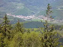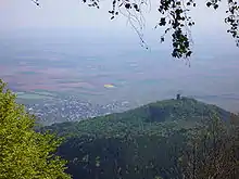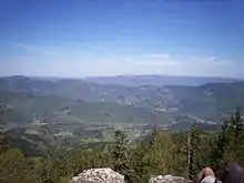 The peak of the mountain, situated opposite to the Haut-Koenigsbourg, in the massif des Vosges, separates the valley of Ribeauvillé from the val de Lièpvre on a surface of about 800 hectares.[1] On the north-east of the Taennchel hides the village of Thannenkirch, and south from the mountain can be reached the old glass arts of the Ribeaupierre which overhang the rocky blocks of the Mittelberg (about 600 metres), the Venuskopf and the Schelmenkopf (905 m). The Taennchel is one of the summits which, from west to east, make up the continental divide between the basin of the Liepvrette up north and the one of the Strengbach down south. It's a huge mountain, its sides are widely open and strongly backed up on the side of the valley of the Liepvrette, while on the opposite side towards Ribeauvillé, it hollows out vertically in a grandiose cirque around the small twin valleys of the Big and Little Glass Art. The Taennchel has the shape of a crescent extending on almost 4 kilometers from the rock of the Rammelstein which is 988 meters high to the mountain which overhangs the low Taennchel from where can be seen the three ruined castles belonging to the sires of Ribeaupierre : Haut-Ribeaupierre, Saint-Ulrich and Girsberg.