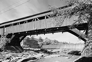 The Taftsville Covered Bridge is a timber-framed covered bridge which spans the Ottauquechee River in the Taftsville village of Woodstock, Vermont, in the United States.[1] Built in 1836 and exhibiting no influence from patented bridge designs,[1] it is among the oldest remaining covered bridges both in Vermont[2] and the nation as a whole.[3]