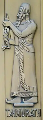 Tahmuras or Tahmures (Persian: تهمورث ,طهمورث, IPA: [tʰæmures]; from Avestan Taxma Urupi "Strong Fox" via Middle Persian: 𐮑𐮇𐮋𐮅𐮊𐮎𐮀‎, romanized: Tahmōref) was the third Shah of the mythical Pishdadian dynasty of Iran according to Ferdowsi's epic poem, the Shahnameh. He is considered the builder of Merv.