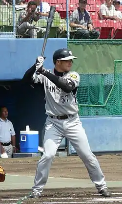Taichi Okazaki (岡崎太一, Okazaki Taichi, born June 20, 1983 in Gojō, Nara) is a Japanese former professional baseball catcher. He has played in his entire career with the Nippon Professional Baseball (NPB) for the Hanshin Tigers.