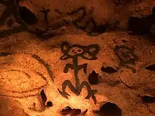 Another notable Taino site is Chacuey, found on the northwestern side of the island along the Chacuey River.[6] This site is well-known for its petroglyphs and impressive stonework of extensive enclosed plazas and sophisticated roadways. The plaza is approximately 600 meters long and enclosed by standing stones covered in petroglyphs of human-like faces leading to the river.[6][7]