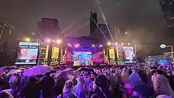 The Taipei New Year's Eve Party (Chinese: 台北最High新年城; pinyin: táiběi zuì High xīnnián chéng) is a New Year's Eve celebration that takes place in Taipei, Taiwan.[1] Visitors gather at the Taipei City Hall and have a clear view of Taipei 101, which is surrounded by fireworks at midnight.[2] The first Taipei New Year's Eve party was on 31 December 2003.
