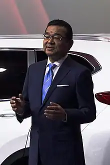 Takahiro Hachigo (八郷隆弘, Hachigō Takahiro, born 19 May 1959) is a Japanese engineer and businessman, who has been the chief executive officer of Honda Motor Co., Ltd., from June 2015 - April 2021 and was succeeded by Toshihiro Mibe.[1] Prior to this, Hachigo was a managing officer at Honda, and started his career at Honda in 1982 as a chassis engineer.[2][3] As CEO, Hachigo sought to streamline the manufacturing process by merging certain operations between motorcycles and cars, and while also lowering the costs of production by consolidating factories at home and abroad involving the budget.[1] Hachigo is currently a member of the company board.[1]
