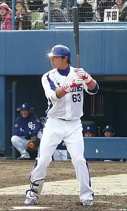 Takehiro Donoue (堂上 剛裕, born May 27, 1985, in Kasugai, Aichi) is a Japanese former professional baseball outfielder for the Yomiuri Giants in Japan's Nippon Professional Baseball. He played with the Chunichi Dragons from 2004 to 2014 and with the Yomiuri Giants in 2015 and 2016.