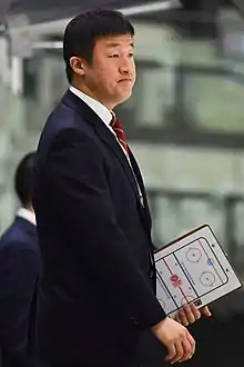 Yamanaka made his coaching debut with the Oji Eagles in the 2007-2008 season and later that year would coach Team Japan to a bronze medal at the World Championships.[3] After leaving the Eagles organization at the conclusion of the 2013-2014 season, Yamanaka took up the position of coaching Smile Japan. He initially served as their assistant coach before becoming their head coach in 2016.[4] Yamanaka was the head coach of the Japanese Women's Olympic Ice Hockey Team at the PyeongChang 2018 Olympic Winter Games, where the team finished 6th.[5] In the 2018-2019 season, he was the head coach of the U18 Team Japan.