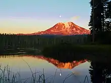 Takhlakh Lake is a lake situated 7.3 miles (11.7 km) northwest of Mount Adams in the U.S. state of Washington. It is fed by a few small unnamed inflow creeks originating near Takh Takh Meadows, tributary to the Cispus River.[4] A popular 53-site campground on the west side of the lake brings summer and early fall campers as well as hikers[5] hiking the Takhlakh Loop Trail and the Takh Takh Meadows Trail, and nearby trails in the Mount Adams Wilderness. A day use area offers a picnic area and provides a boat ramp as well.[6] The lake is one of the five lakes, all within a seven-mile radius, in the Midway High Lakes Area. It is managed by the Gifford Pinchot National Forest.[7]
