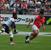 Takuma Asahara (浅原拓真, Asahara Takuma, born 7 September 1987) is a Japanese international rugby union player who plays in the prop position.[1] He currently plays for the Sunwolves in Super Rugby and the Toshiba Brave Lupus in Japan's domestic Top League.[2][3][4]