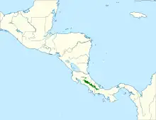 The Talamanca hummingbird is found in mountains from central Costa Rica into western Panama. In Costa Rica it occurs in the Cordillera Central and Cordillera de Talamanca and in Panama only in the Volcán Barú massif of Chiriquí Province. It inhabits oak forests and is partial to the forest's edges and clearings, and also is found in nearby secondary forest. In Costa Rica it occurs from 2,000 m (6,600 ft) up to treeline but is most common above 2,500 m (8,200 ft) and is occasionally found as low as 1,850 m (6,100 ft). In Panama it occurs between 2,000 and 2,400 m (6,600 and 7,900 ft).[8]