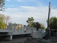 A $15.9 million contract for construction of the station and the replacement of the adjacent Talbot Avenue overpass was awarded in August 2010.[16] Construction began in November 2010, with a footbridge connecting Park Street to West Park Street removed in December.[17] An official groundbreaking was held in June 2011.[18] The bridge over Talbot Avenue was replaced during the third weekend of December 2011, using techniques developed in MassDOT's Fast 14 highway bridge replacement program.[15]