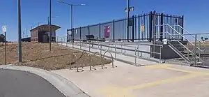 ![]() Station forecourt and entrance as viewed from the carpark in December 2021 | ||||||||||||||||