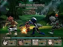 The game features a variation of the series' Linear Motion Battle System, where players are able to freely move their characters around the battle area and engage enemies in real-time, known as the "X-LiMBS" (Crossover Linear Motion Battle System), which was specifically designed to resemble a traditional fighting game.[5] Despite playable characters and enemies being rendered in 3D, battles are limited to a two-dimensional plane where combatants can only move forward, backward, or jump straight up into the air. In addition to normal attacks, players can attack enemies using special skills called "Eres", which involve spending Tech Points (TP), and can be chained together to create combos. A total of eight playable characters can be recruited as the game progresses, with up to four of them making up a player's party at any time. As players attack enemies, they fill up a "Climax" gauge at the bottom of the screen that can be expended to freeze all enemies in place for a short period. Whenever battles are completed, players are awarded both experience points that allow characters to gain levels and grow stronger, as well as items called "Eres Stones" that allow them to purchase additional skills.[5]