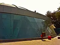 Adjacent to the main stadium is the "glitzy" Talkatora Swimming Pool building.[3]