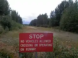 The Talkeetna Airstrip is a historic runway in Talkeetna, Alaska. It is a rectangular area of land, covered by grass and gravel, extending southward along D Street from First Street toward the Susitna River. It is about 1,800 feet (550 m) long and 30 feet (9.1 m) wide, with its northern stretch now lined with private residences and its southern stretch surrounded by public woodlands. The airstrip was created in 1940 as the result of a presidential executive order issued by President Franklin Delano Roosevelt in 1937, which set aside federal land near Talkeetna for aviation-related purposes. It played a major role in the economic development of the community, as air transport was the most reliable method of bringing supplies and travelers into the area.[2]