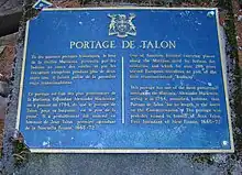 Talon Chute is a waterfall on the Mattawa River and historic site on the border between the geographic township of Olrig, Nipissing, Unorganized, North Part and the municipality of Calvin in Nipissing District, northeastern Ontario, Canada. It is located at the south-eastern end of Lake Talon about 2 kilometres (1.2 mi) east of the community of Blanchard's Landing, and is accessible only from the water or on foot. It features a water control dam and was once the site of a brucite marble mine.