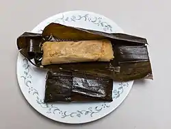 The tamalito or "tamalitos" is a common dish prepared by the Maya (Mexico and Belize). The appearance of the "tamalitos" is of the tamales which is wrapped with leaves but without meat.[1]
