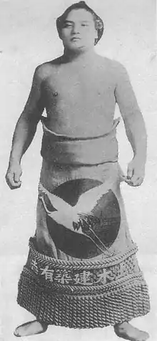 Tamatsubaki Kentarō (玉椿憲太郎, Tamatsubaki Kentarō, 10 November 1883 – 19 September 1928) was a sumo wrestler from Toyama City, Japan. He was known for his techniques, which accommodated his small size. Although his height was only 158 cm, he gave the likes of Hitachiyama and others a real challenge and was called the "mite".[1] He was the shortest wrestler in sumo history,[2] and also one of the lightest at 73 kg. His highest rank was sekiwake. After retirement he was known as Shiratama-oyakata.