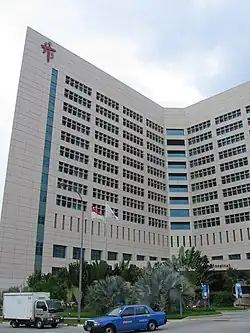In 2003, the hospital was declared the designated hospital for SARS screening and treatment by the Ministry of Health due to its past experience with communicable diseases (the Communicable Disease Centre was located nearby) and was "effectively locked down" to contain the outbreak, which began with Esther Mok.[4] At the lobby of the hospital, a memorial plaque was dedicated in memory of the hospital's doctors and healthcare workers, two of whom died of the disease, who worked tirelessly during the SARS epidemic and Minister of Health Gan Kim Yong paid tribute to the hospital's staff.[4][5][6]
