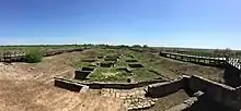 The delta reaches into the northeasternmost part of the Sea of Azov, which the Ancient Greeks called Lake Maeotis. The site of ancient Tanais is about 30 km west of modern Rostov-on-Don. The central city site lies on a plateau with a difference up to 20 m in elevation in the south. It is bordered by a natural valley to the east, and an artificial ditch to the west.