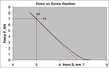 The exact equation used to calculate the required screw-down setting for a required force is:[5]