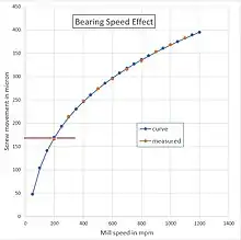 Excel plot of the measured bearing speed effect data and curve matching those points