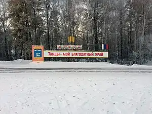 Tandinsky District (Russian: Танди́нский кожуун; Tuvan: Таңды кожуун, Tañdı kojuun) is an administrative[1] and municipal[2] district (raion, or kozhuun), one of the seventeen in the Tuva Republic, Russia. It is located in the center of the republic. The area of the district is 5,091.70 square kilometers (1,965.92 sq mi).[2] Its administrative center is the rural locality (a selo) of Bay-Khaak.[1] Population: 12,891(2010 Census);[3] 13,827 (2002 Census);[6] 23,653(1989 Census).[7] The population of Bay-Khaak accounts for 23.1% of the district's total population.[3]