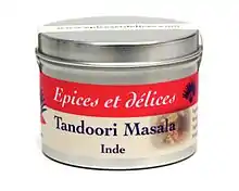 Tandoori masala or tandoori sauce is a mixture of spices specifically for use with a tandoor, or clay oven, in traditional cooking in the Indian subcontinent. The specific spices vary somewhat from one region to another but typically include: garam masala, garlic, ginger, onion, cayenne pepper, and sometimes other spices and additives. The spices are often ground together with a pestle and mortar.