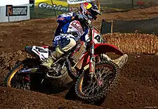 At the end of the 2008 Season, Red Bull Yamaha De Carli announced that they will move on to MX1-GP in the 2009 season and the riders will be Antonio Cairoli and Tanel Leok.[5] The 2009 season started off well for the Estonian, winning the Italian MX1 motocross championships by a margin of 5 points over Cairoli (158–153).[6] He won the first GP of the season in Faenza, Italy, and was the first holder of the red plate marking him as world championship leader.[7] 2009 year was steady season for Leok, only 2 retirements: 1st race in Latvia and 2nd race in Brazil.
