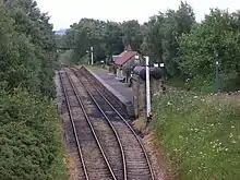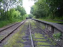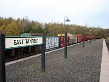 The preserved line was first built from Marley Hill to the current northern terminus, Sunniside Station, with passenger trains beginning on 2 July 1981,[3] and an official opening ceremony on 14 July 1982. Andrews House station just south of Marley Hill sheds was completed between 1987 and 1989[3] and was equipped with platforms, a water tower, a station building and a footbridge. The first train south to Causey was on 27 July 1991, with the official opening ceremony being held on 15 August 1991. The first train further south to the current end of the line at East Tanfield occurred on 18 October 1992.[3] East Tanfield Station itself was opened in 1997. The Causey to Tanfield section is through a wood lined gorge.[4]