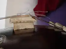 This dynamic process can be fine-tuned using a cotton thread between string and bridge: by shifting the thread, the grazing contact sequence is shifted to a different position on the bridge, changing the harmonic content. Every single string produces its own cascading range of harmonics and, at the same time, builds up a particular resonance. According to this principle, tanpuras are attentively tuned to achieve a particular tonal shade relative to the tonal characteristics of the raga. These more delicate aspects of tuning are directly related to what Indian musicians call raga svaroop, which is about how characteristic intonations are important defining aspects of a particular raga.[6] The tanpura's particular setup, with the cotton thread as a variable focus-point, made it possible to explore a multitude of harmonic relations produced by the subtle harmonic interplay in time of its four strings.