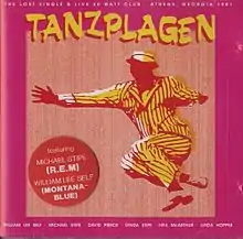 The band's name (meaning "dancing manias" in German) came about by randomly pointing to words in a German dictionary, the same technique Stipe had employed to find the R.E.M. moniker (except with an English dictionary).[2][3] The band toured the U.S. southeast and recorded a single for David Healy's Dasht Hopes label.[4] In his book "It crawled from the South", Marcus Grey writes: "Determined to pursue his art-noise interests parallel to his more conventional activities with R.E.M., Michael hooked up with William Lee Self, Neil McArthur and David Pierce in Tanzplagen. The connection was strengthened when Oh-OK Lynda Stipe and Linda Hopper contributed backing vocals at a 40 Watt Club appearance that was taped to provide a rough-and ready three track demo. It includes the Self compositions 'Living By the Neck' and 'Peter Pan', and the Stipe-Self song 'meeting'. In addition to further occasional appearances in town and one short local tour Tanzplagen even got as far as recording tracks for a single, intended for release on David Healys ill-fated Dasht Hopes label. The studio chosen was Bombay in Smyrna where back in February R.E.M. had made its first recordings. Neil McArthur had left by the time of the session, and so William Lee Self, the groups real leader, doubled on bass while Lynda Stipe supplied vocals. However it is Michaels contribution to the two songs recorded ('meeting' and Self's 'treason') that Producer Joe Perry remembers: 'Micheal would sing and bang on a Farfisa organ creating a large explosion. It was a different time. Experimental stuff'".[4] Soon later, R.E.M. were signed to IRS and released the Chronic Town EP (which had been recorded for Healy's label's debut release), but the Tanzplagen single went unreleased until 1991 when Strangeways Records brought it out as their inaugural release.[5] The CD includes a duet with Stipe and his sister Lynda and some improvised live recordings that include Linda Hopper, her bandmate at the time in the band Oh-OK. Self describes the contents of "The Lost Single and Live at the 40 Watt club, Athens Georgia 1981": "thus I wrote the song 'Living By The Neck' but had no title for it, Stipe came up with the title only meaning 'living by the guitar neck'. We also intentionally booked all our in town shows on full moon nights - this truly made a drastic but wonderful difference in the atmosphere and audiences behaviour." Tanzplagen dissolved in late 1982 when Self relocated to Germany. David Pierce went on to form Buzz Of Delight with Mathew Sweet. Neil McArthur continued his studies at the University of Georgia.