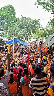 Tarakeswar (pronounced Tarokeshwar) is a famous sacred city and a municipality in Hooghly district in the Indian state of West Bengal. Tarakeswar is called "Baba Dham" or "The city of Shiva".[6] It is one of the major tourist and holy place of West Bengal as well as India.[7] Tarakeswar is a place of pilgrimage of Lord Shiva sect in West Bengal 58 kilometres (36 mi) away from State Capital Kolkata and about 1,520 kilometres away from National Capital New Delhi. Tarakeswar can be reached conveniently by train and bus from various places of West Bengal. Tarakeswar Station is well connected by Howrah Station. This city is also famous for agriculture, Tarakeswar's (Especially Champandanga) potato is also famous in all over India.
