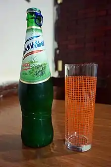 Tarkhuna (Georgian: ტარხუნა, Georgian pronunciation: [tʼaɾχuna]) or Tarhun (Russian: тархун) is a Georgian[1] carbonated soft drink that is flavored with tarragon or woodruff. It was first created in the Kutais Governorate of the Russian Empire in 1887, by a young Georgian pharmacist named Mitrofan Lagidze in the city of Kutaisi. Mitrofan Lagidze began to add odorous chukhpuch containing extract of Caucasian tarragon to sparkling water with natural syrups of his own production. Before the First World War, Lagidze repeatedly received gold medals at international exhibitions for his water. In 1927, the Soviet authorities built a plant for the production of "Lagidze water" in Tbilisi, and Lagidze himself was appointed director.