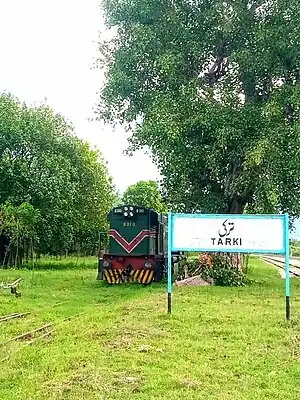 Tarki Railway Station (Urdu and Punjabi: ترکی ریلوے اسٹیشن) is located in Tarki village, Jhelum district of Punjab province of the Pakistan.