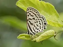Tarucus indica, the Indian Pierrot, is a small butterfly found in India that belongs to the lycaenids or blues family.