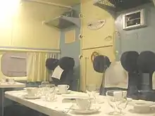 On board dining was a notable feature of the trans-Tasman and later, the Coral Route. The food was cooked from scratch on board. Morning and afternoon teas were prepared on board as well as hot meals. A dumbwaiter was used to provide access to the two decks of the flying boats.