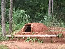 The word tatakua comes from the Guarani word "tatakua", literally, "fire hole" - from the nouns tata, "fire" and kua, "hole".[7][8][9] Originally, the Guarani people used the nests of a certain kind of ant (takuru), which used its excrement mixed with soil and saliva, resulting in solid and resistant nests, which could reach up to two and a half meters in height.[10][11][12]