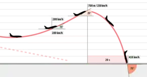After reaching the altitude of 700 metres (2,300 ft), the aircraft started a steep nosedive, with the pitch angle reaching −75° by the end of the flight (end of the recording).