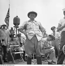 Suga attended the official surrender of the Japanese forces in the Kuching area by their commander, Major-General Hiyoe Yamamura, on board HMAS Kapunda on 11 September 1945.[14] Later that day Suga officially surrendered to Brigadier Thomas Eastick, commander of Kuching Force — a detachment from the Australian 9th Division — at Batu Lintang camp.