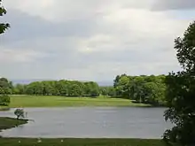 The parkland consists of 2,000 acres (8.1 km2) of landscaped deer park, 1,000 acres (4.0 km2) of which are open to the public. Much of the design of the park was inspired by the ideas of Humphrey Repton.[31] In the park are two meres; the larger, Tatton Mere, is natural but the other, Melchett Mere, is the consequence of subsidence in the 1920s.[32] The meres are Sites of Special Scientific Interest and Ramsar sites.[33]