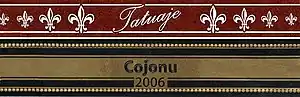 All of the vitolas in this range are full-bodied cigars. Beginning in August 2006, the wrapper was changed to a ligero from a viso wrapper. The latest and final edition of the Cojonu line is unique in that it includes three different wrappers: Ecuadorian Sumatra, Broadleaf Maduro, and Ecuadorian Habano. In addition to the regular Tatuaje band, there is a second, gold band with the year of that vitola's introduction in black, and in the 2012 edition each is distinguished by a different secondary band which is either white, black or gold referring to its wrapper leaf. The Gran Cojonu, however, is bandless. In addition, it has a shag (untrimmed) foot. The year in the model name refers to the year of introduction. Thus, the Cojonu 2003 was introduced in 2003. Plans are to introduce a new model every three years. There was no release for 2015 or 2018, but those are planned to be released by early 2023. The Cojonu 2012 came with some minor changes, including a box press. The Cojonu 2021 was released late in 2021 and is currently the largest size of the Cojonu line that has the release year in the name.