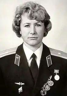 Tatyana Dmitryevna Kuznetsova (Russian: Татьяна Дмитриевна Кузнецова; 14 July 1941 – 28 August 2018) was a Soviet cosmonaut.[1][2] She was the youngest person ever selected by a government human spaceflight program.[3]